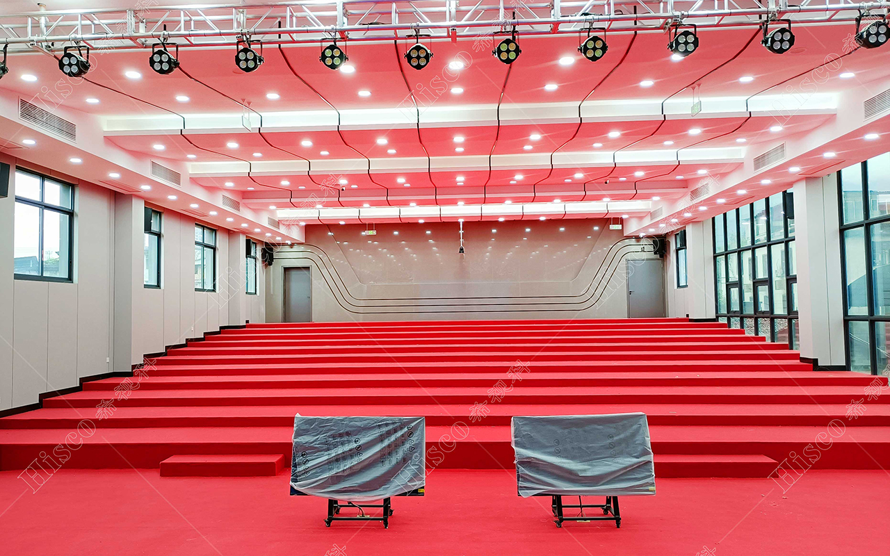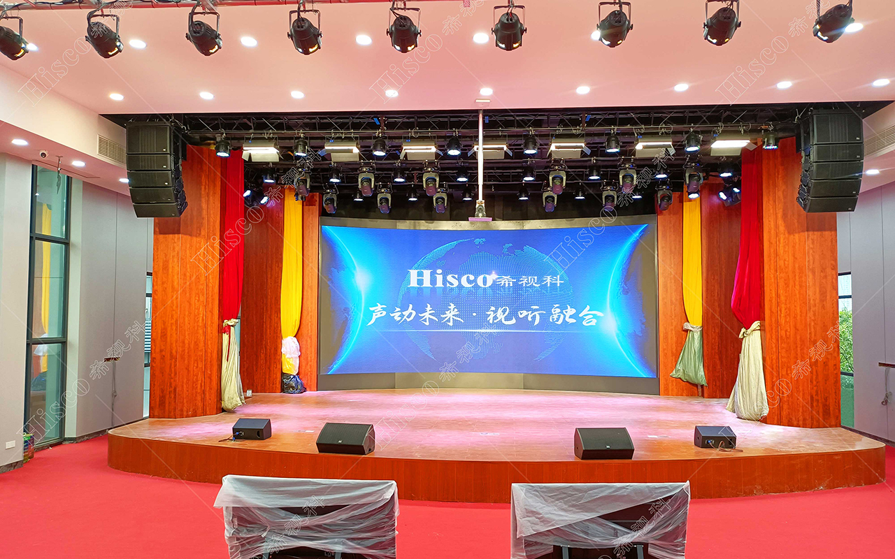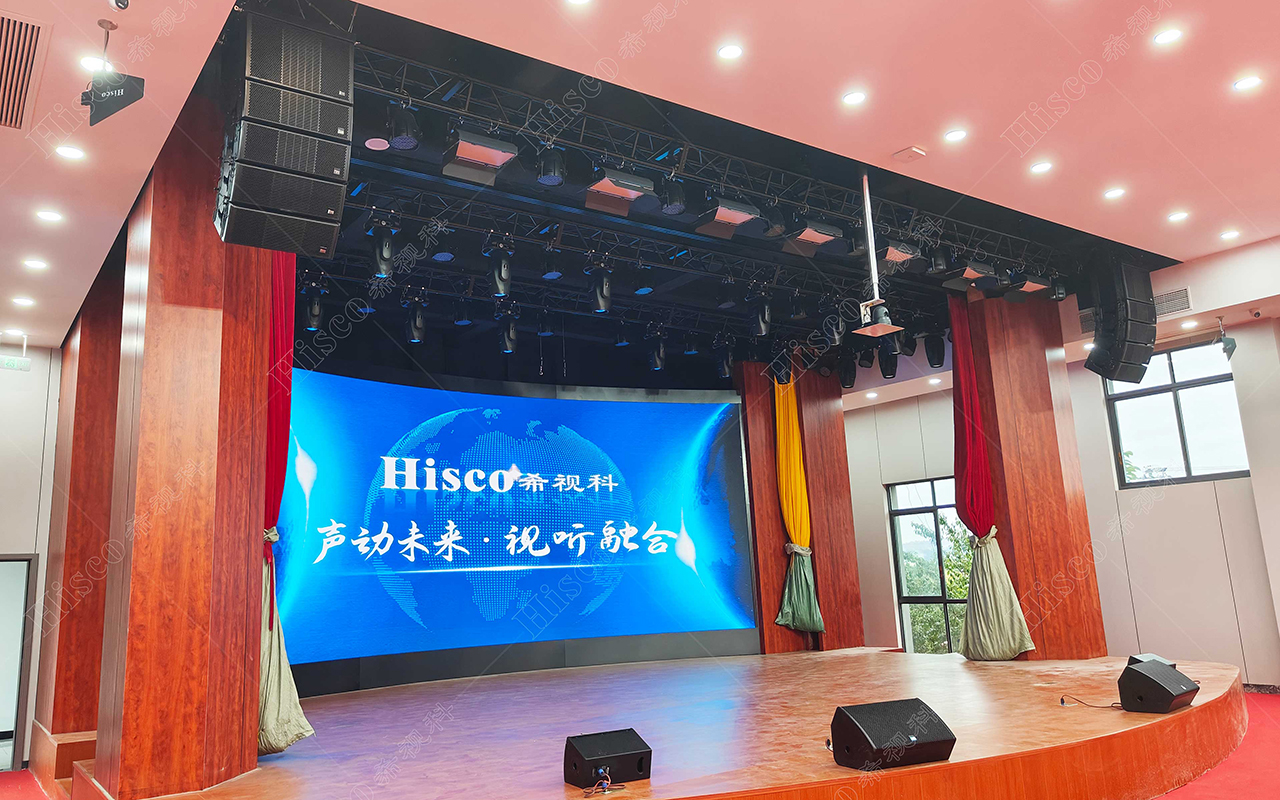 • 希视科(Hishico)专业扩声系统采用线性阵列扬声器设计,能够实现全场声压级均匀分布,确保每个座位都能听到清晰、自然的声音。系统配备了数字音频处理器和多通道功率放大器,支持多种音频输入源,包括话筒、电脑音频和外部设备输入,满足会议发言、培训讲解和文艺演出等不同场景的需求。