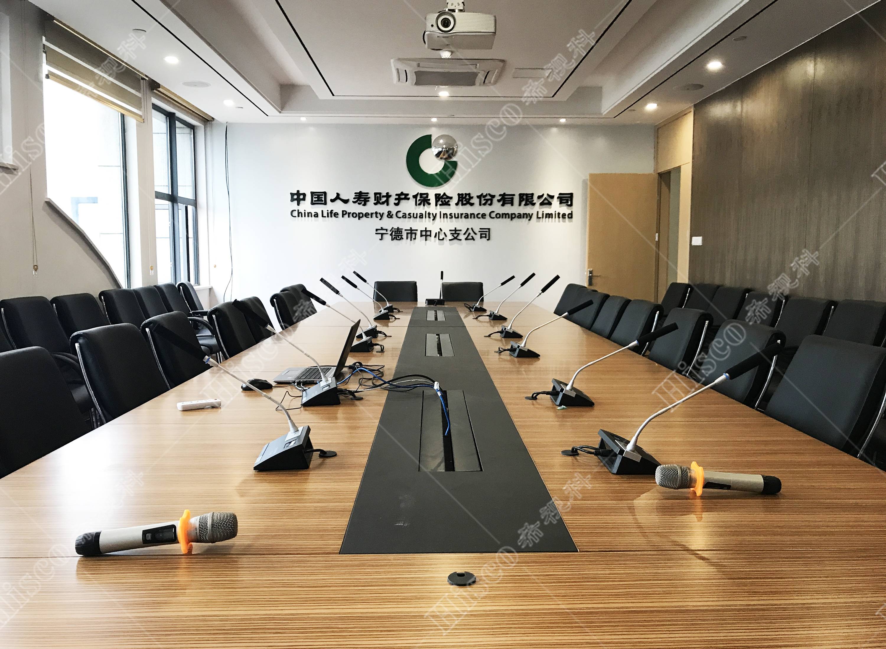 中国人寿保险股份有限公司宁德分公司成立于1996年11月28日,注册地位于宁德市蕉城区蕉城南路57号。本次项目为企业集团会议室会议系统建设,主要设计了数字会议系统、扩声系统、显示系统、集中控制系统、矩阵系统、无纸化升降等。