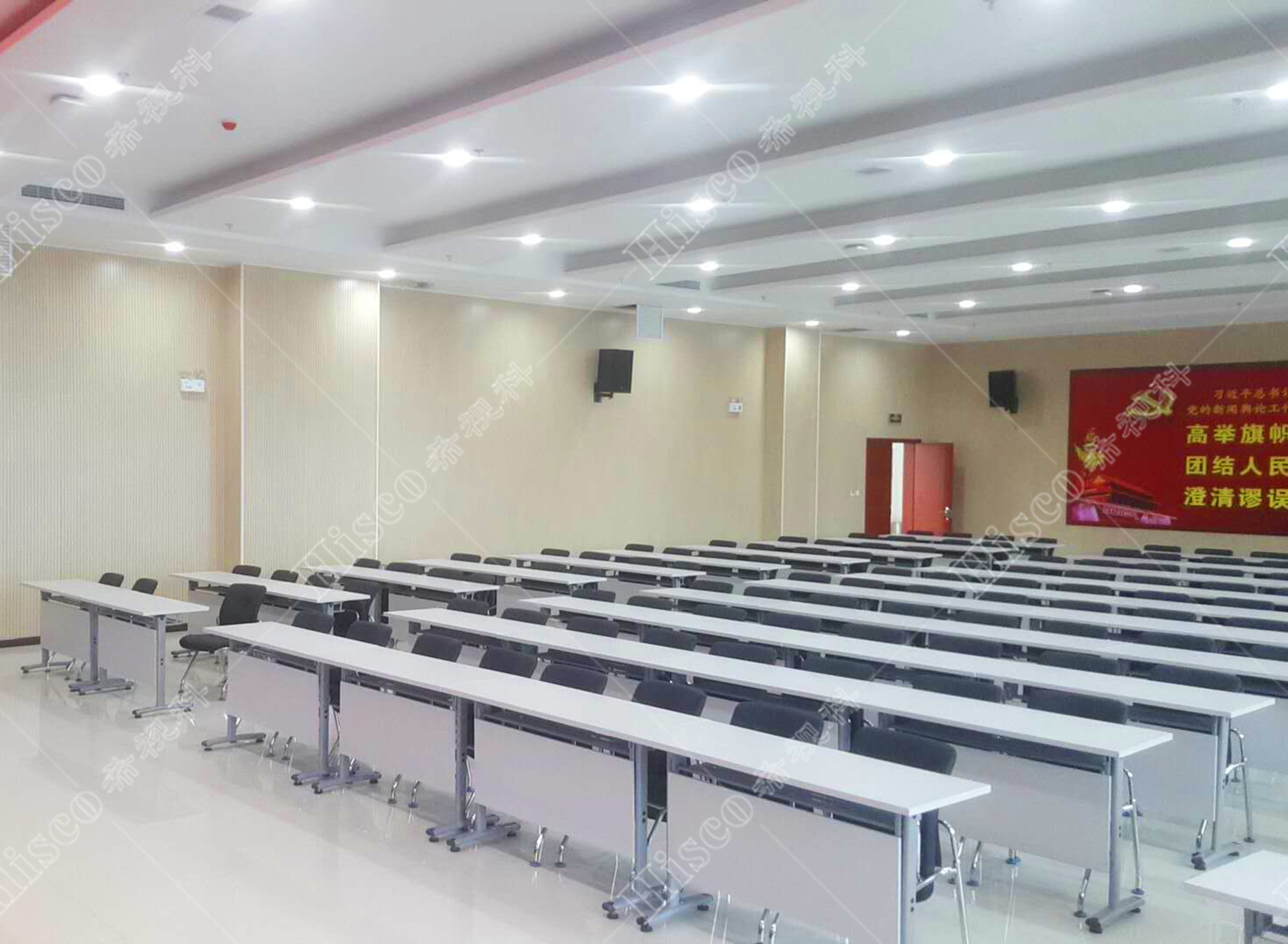 会议室内需要需要做扩声系统、会议系统、显示系统,智能化系统;满足日常开会的讨论、发言等等。综合礼堂的设计,追求语言的清晰图和饱和度,声压级级要求达到国家厅堂扩声系统一级标准。同时预留了丰富的接口,方便以后系统的扩展,实现整个系统的强大功能。同时有演出用的舞台,配置了专业的舞台灯光系统和演出扩声系统,加了超低音音箱和效果器,追求声音的饱满度和浑厚感,能够满足文艺演出,会议报告,庆典活动召开等功能。
