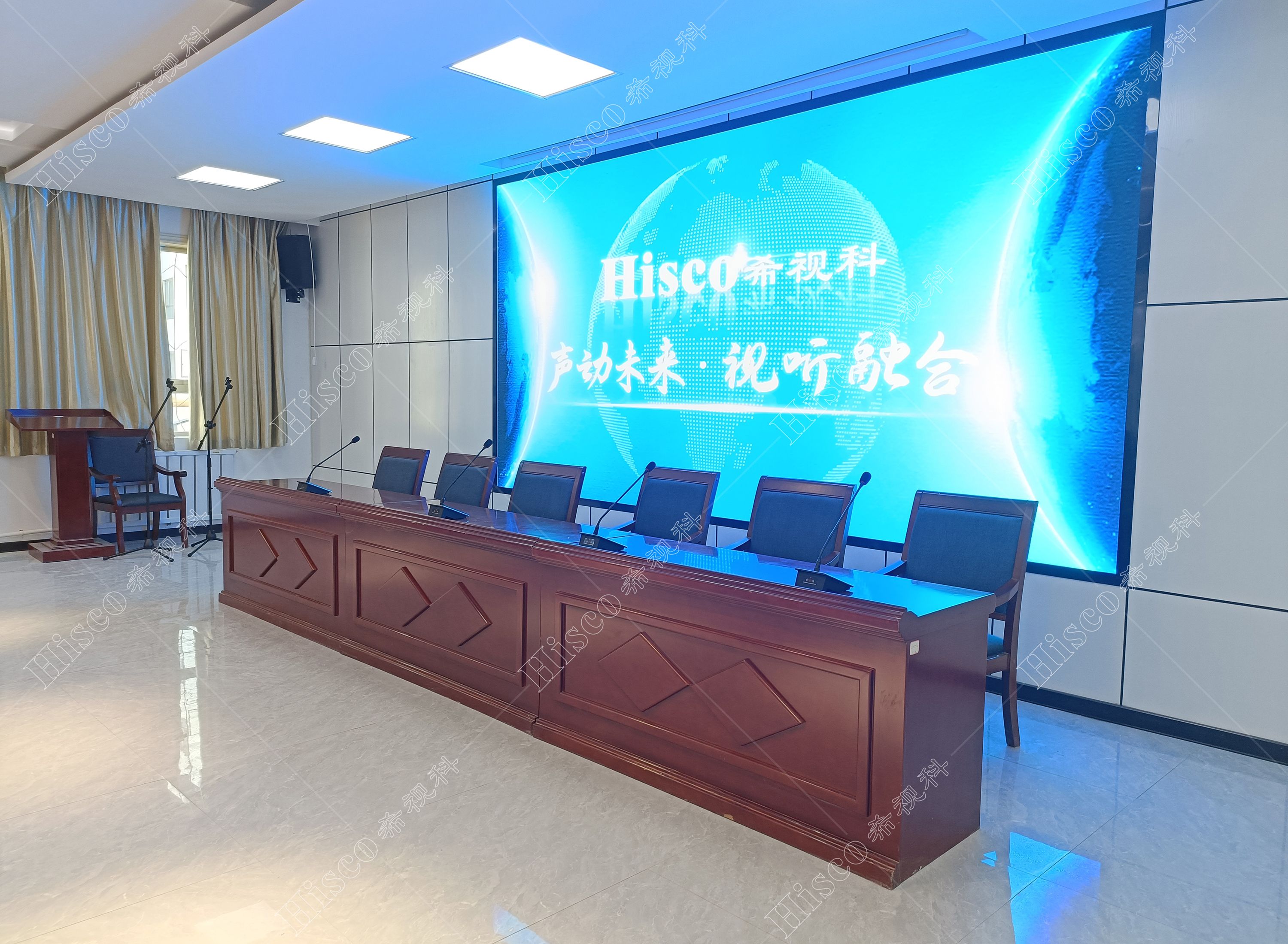 本次设计会议室及功能需要较多,音视频信号管理多,通过希视科产品实现会议室智能统一控制,整体使用方便快捷,为用户节省了时间,现场设备声音还原度,话筒拾音距离远,得到用户一致的认可,现场具有两名希视科的技术同事进行项目保证,确保项目顺利验收!