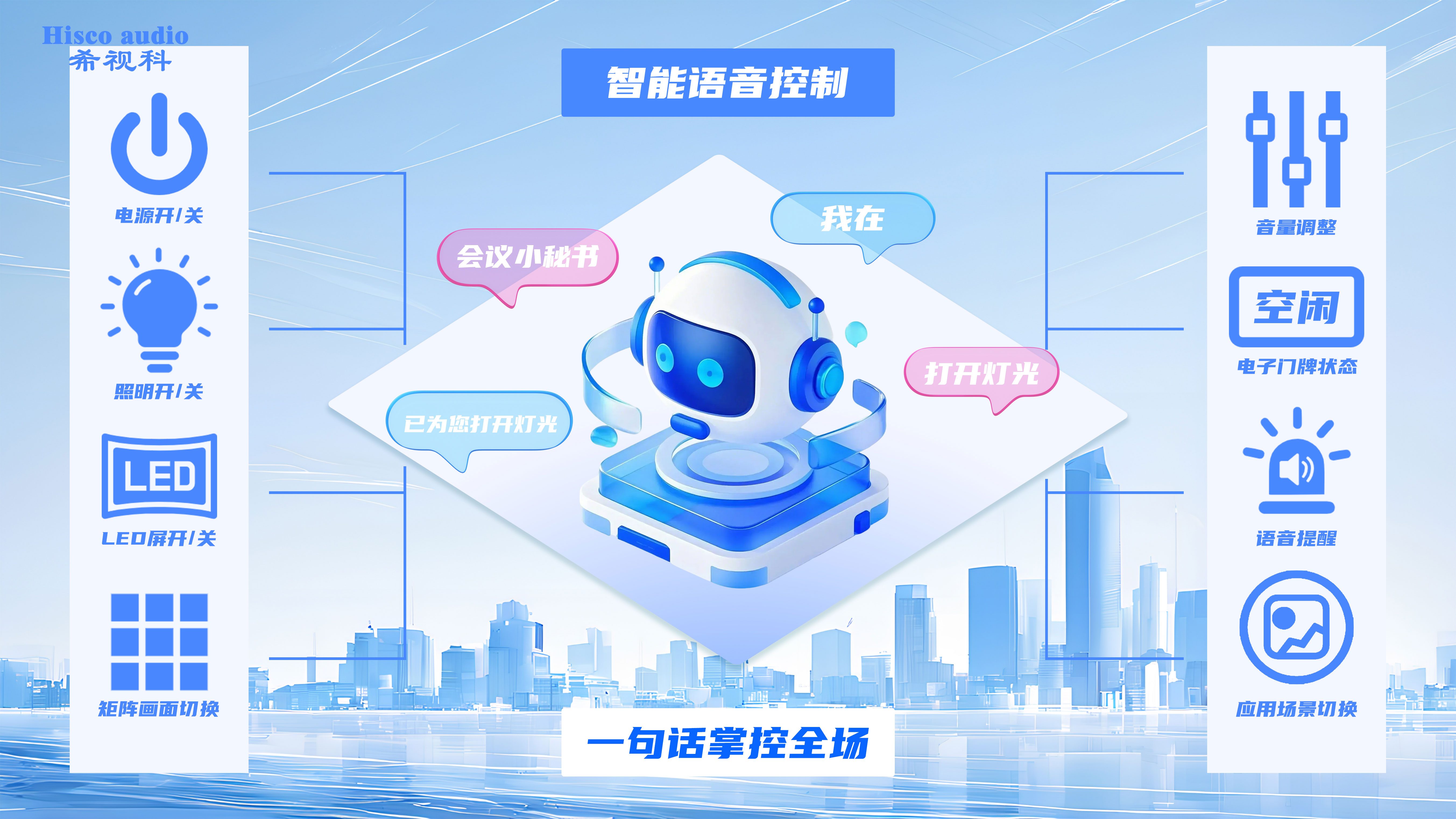通过先进的AI语音识别技术,用户只需发出简单指令,即可完成设备开关、音量调节、信号切换等操作,无需手动操作,大大提升了会议效率。无论是切换PPT、播放视频,还是调整音频参数,都能轻松实现,真正做到了“说话即命令”。